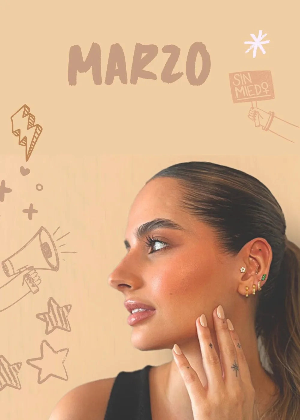 Crea tu ear stack mezclando aros delicados y studs con texturas orgánicas. Combina helix con lóbulo, flat, tragus o conch para un efecto editorial. Inspírate y arma tu look en colección de oreja.