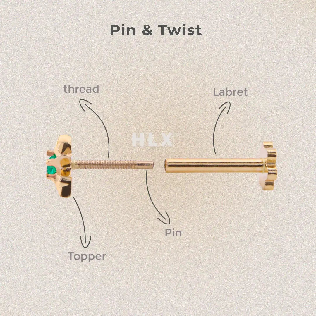 Descubre cómo funcionan nuestros piercings en oro 18k y titanio grado implante: Pin & Twist, Clicker, Rosca Interna y Push Pin