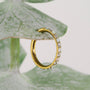 Su formato de 8mm lo hace ideal para zonas como helix y lóbulo, adaptándose cómodamente a earlooks minimalistas o combinaciones más elaboradas. El acabado en dorado anodizado realza el brillo natural de las piedras y aporta un aire refinado y contemporáneo.