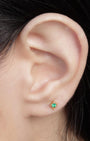 Ideal para Helix, Tragus, Lóbulo, Upper Lobe o Conch. Su forma triangular aporta un toque moderno y estructural, perfecto para combinar con otras joyas en oro y esmeralda.