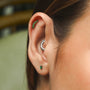 Su diseño alargado y delicado se adapta perfectamente a zonas como helix y lóbulo, aportando presencia sin sacrificar comodidad. Es una pieza ideal para quienes buscan un toque de color más marcado dentro de una estética limpia y moderna.