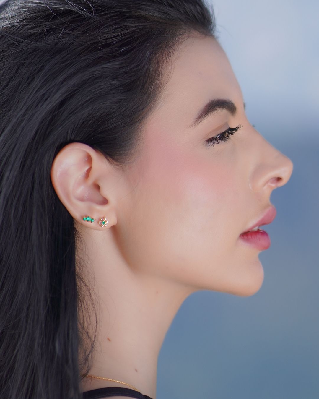 Una joya que celebra la elegancia natural de Colombia. Este labret para piercing de oreja está elaborado en oro sólido de 18K y presenta un delicado diseño en forma de flor con cinco esmeraldas colombianas naturales de 2 mm, cuidadosamente engastadas para resaltar su color verde profundo y su brillo característico.